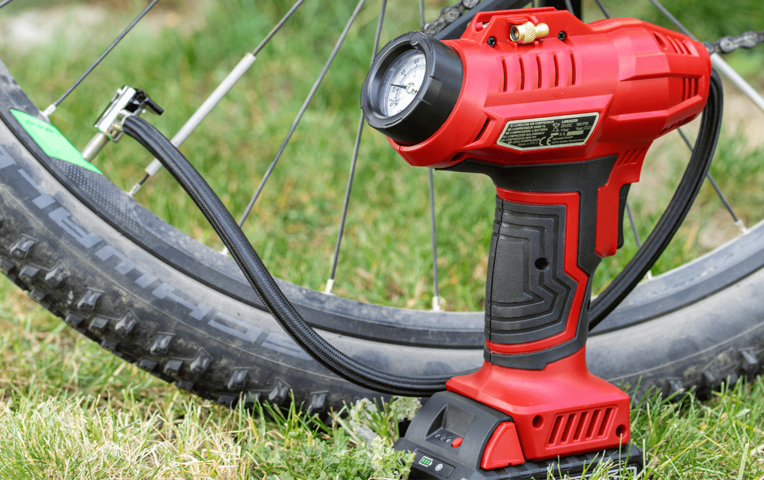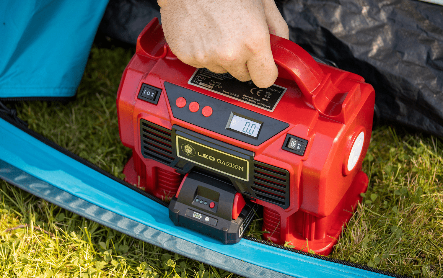 Mit einer Maximalleistung von bis zu 11 Bar und einem kraftvollen Motor können bis zu 4 Autoreifen mit einer Akkuladung auf 2,5 Bar gefüllt werden.